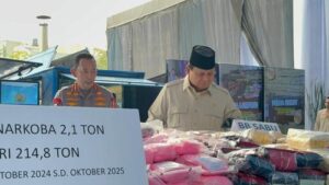 newsoneindonesia.com ||Jakarta– Presiden Prabowo Subianto menyaksikan pemusnahan barang bukti narkoba 214,84 ton senilai Rp 29,37 triliun, selama periode satu tahun pemerintahan di Lapangan Bhayangkara Mabes Polri, Jakarta. Pantauan Awak media Prabowo tiba pukul 13.22 WIB, Rabu, (22/10/2025).