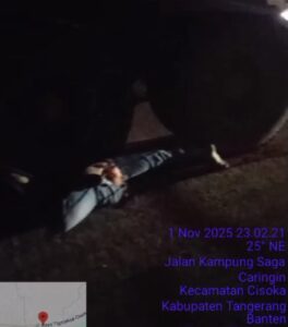 Kabupaten Tangerang newsoneindonesia.com – || Sebuah kecelakaan lalu lintas tragis terjadi di Jalan Raya Kp. Saga, depan Puskesmas Kecamatan Cisoka, Kabupaten Tangerang, pada Sabtu malam sekitar pukul 23.00 WIB, 01November 2025. Seorang Pria pengendara motor meninggal dunia setelah terlindas mobil truk tanah di jalan yang kondisinya masih dalam proses betonisasi.(02/11/2025)