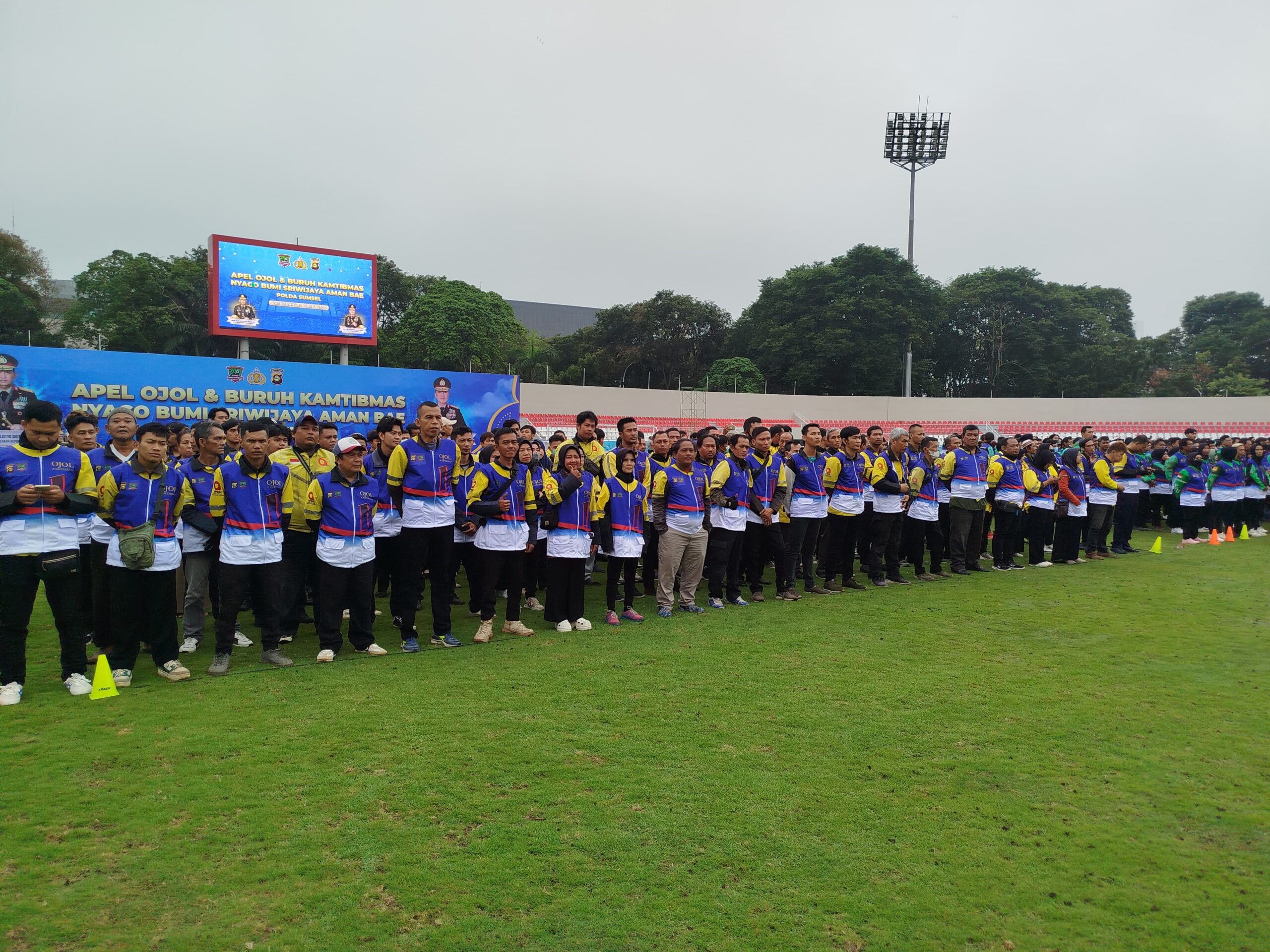 Palembang, newsoneindonesia.com – Sebanyak 5.000 pengemudi ojek online dan pekerja dari berbagai organisasi buruh mengikuti Apel Ojol dan Buruh Kamtibmas yang dipimpin langsung oleh Kapolri Jenderal Polisi Drs. Listyo Sigit Prabowo, M.Si. di Stadion Bumi Sriwijaya, Palembang, Minggu pagi (8/3/2026).