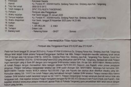 newsoneindonesia.com||Tangerang- Keluarga Ibu Haeliyah, warga Kampung Pondok RT 003 RW 004, Desa Sindang Panon, Kecamatan Sindang Jaya, Kabupaten Tangerang, mendesak kepastian hukum atas laporan dugaa...