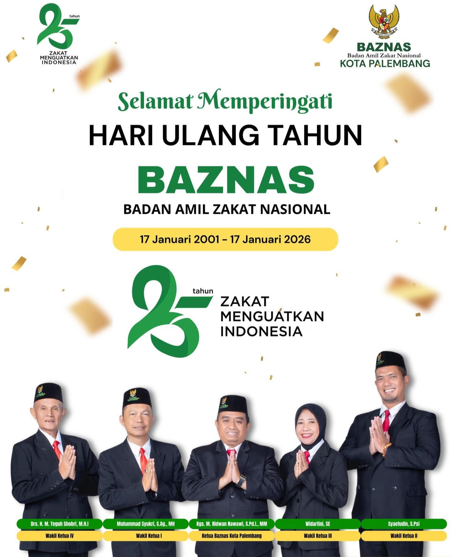 Dengan semangat Milad ke-25 serta dukungan penuh terhadap tema nasional “Zakat Menguatkan Indonesia”, BAZNAS Kota Palembang optimistis zakat akan terus menjadi pilar penting dalam mewujudkan kesejahteraan masyarakat, keadilan sosial, serta memperkuat persatuan di tengah masyarakat Kota Palembang.