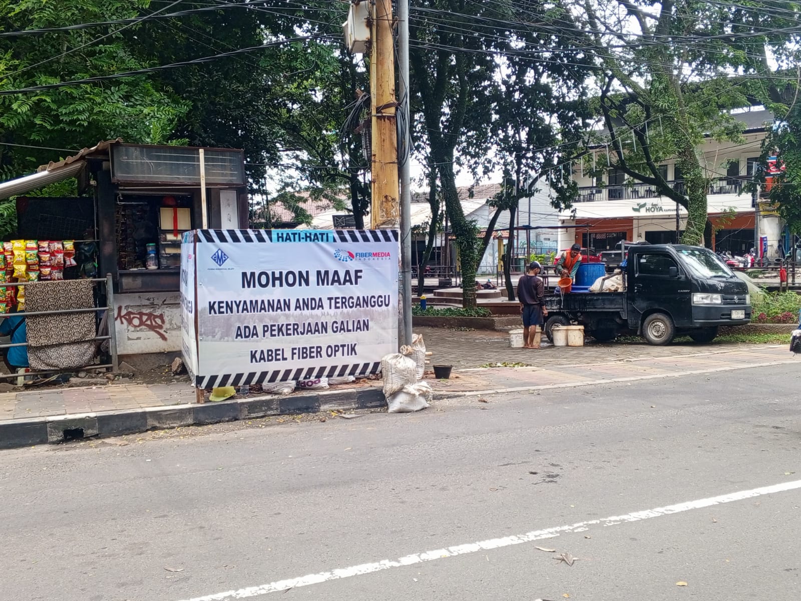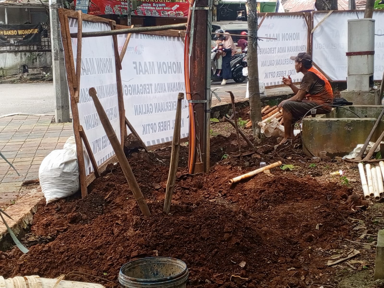 Berdasarkan pantauan di lapangan, sejumlah pekerja terlihat melakukan penggalian dan pemasangan kabel optik.