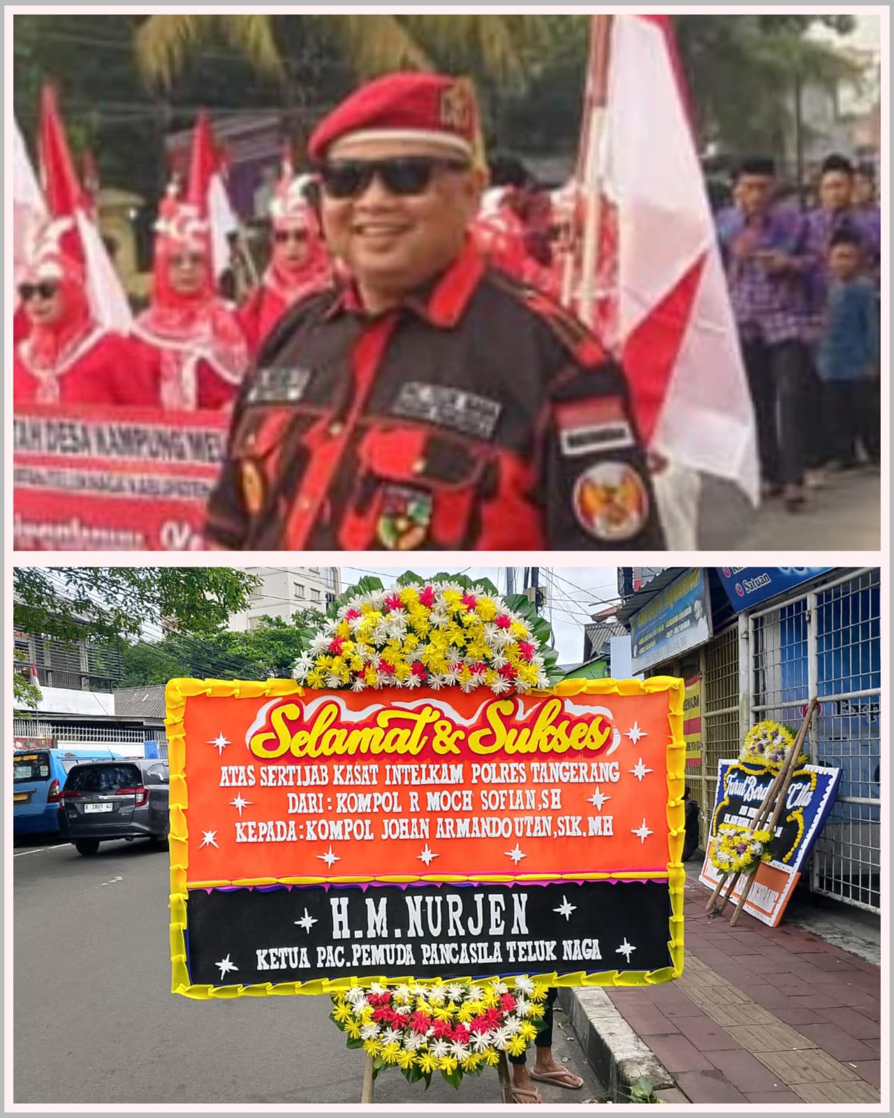 Teluknaga Cenghar, newsoneindonesia.com  — | H.M. Nurjen.ST.,selaku Ketua Ormas Pemuda Pancasila Pimpinan Anak Cabang (PP-PAC) Kecamatan Teluknaga Cenghar, mengirimkan bunga selamat dan sukses kepada Kompol Johan Armando Utan, S.I.K., M.H., yang akan menjabat sebagai Kasat Intelkam Polresta Tangerang. Acara serah terima jabatan (Sertijab) akan digelar pada Senin pagi, 19 Januari 2026, di Mako halaman Polresta Tangerang, Polda Banten.