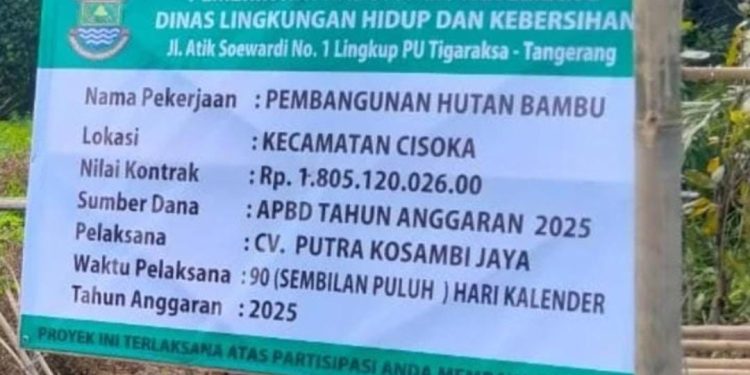 Bambu adalah tanaman yang mudah tumbuh dan dapat ditanam secara swadaya oleh masyarakat, namun di Kabupaten Tangerang, bambu menjadi proyek, yang menghabiskan miliaran rupiah.