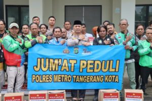 “Program Jumat Peduli ini rutin kami laksanakan sebagai bentuk kepedulian kepada masyarakat, termasuk saudara-saudara kita para ojol yang memiliki peran penting dalam mobilitas masyarakat Kota Tangerang,” ujar Kombes Jauhari.