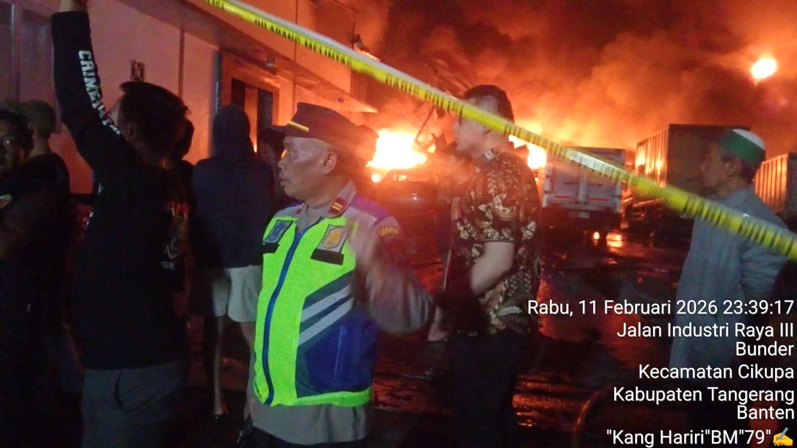 Petugas BPBD Kabupaten Tangerang, Tim Polsek Cikupa Reskrim, Bhabinkamtibmas, Bhabinsa, Lurah Bunder didampiingi Ketua RT 012 dan Ketua RW 03 juga anggota Trantib Linmas Kelurahan Bunder dan lainnya.Masih berjaga di lokasi untuk mengatur lalu lintas dan memantau situasi. Api diperkirakan padam pukul 03.00 WIB (Kamis,12/02/2026) dan tim Damkar saat ini masih terus bekerja guna melakukan pendinginan dan penyelidikan lebih lanjut.