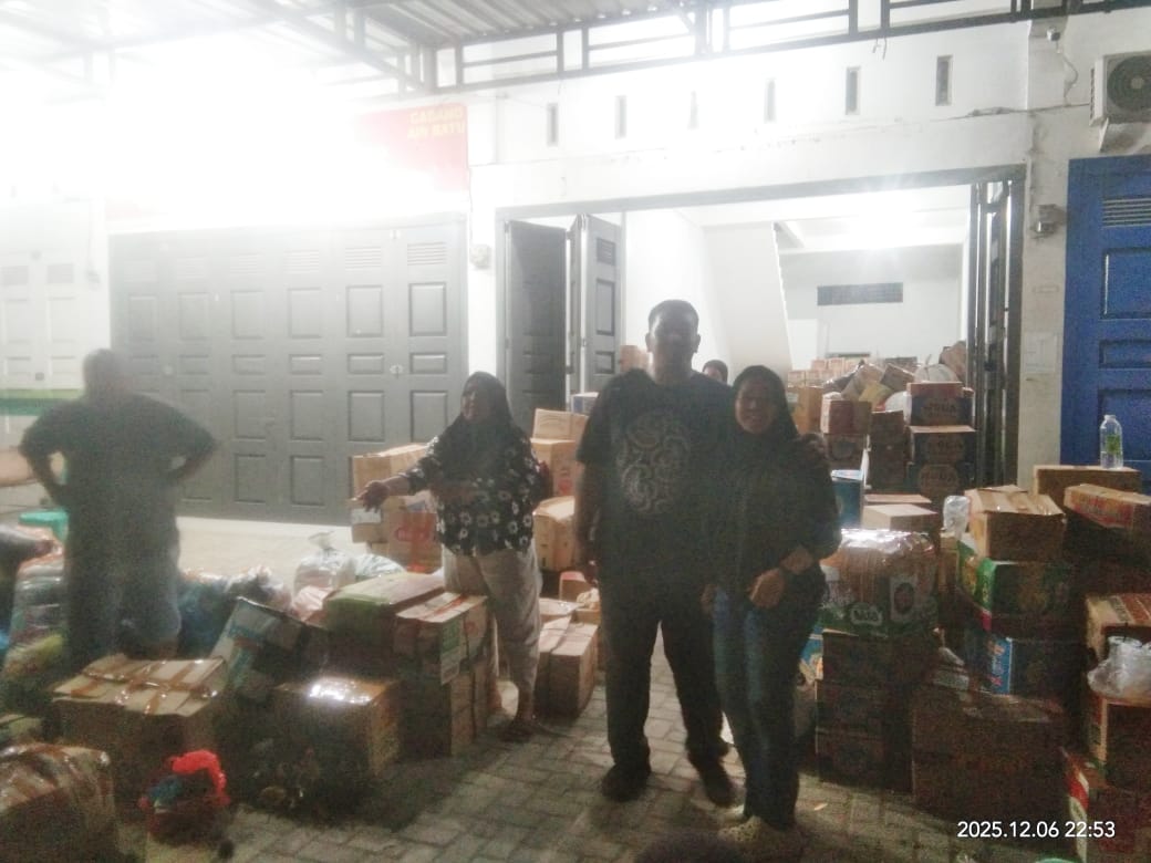 “bahwa bantuan yang telah disalurkan pada hari jumat 5 Desember 2025 telah kita kirimkan ke wilayah Kabupaten Tapanuli Utara dan hari ini tepatnya malam minggu kita mengirimkan bantuan berupa air mineral, mie instan, roti, pakaian layak pakai serta bahan lainya,”katanya.