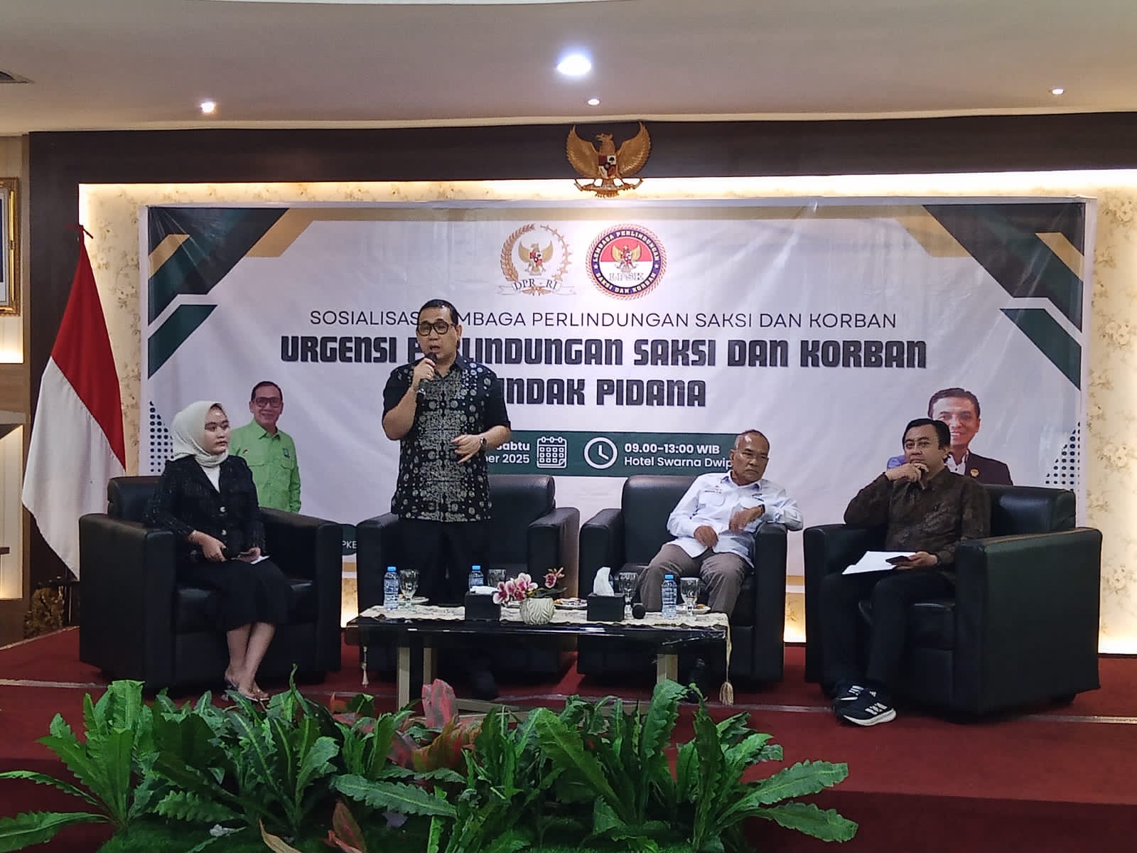 Newsoneindonesia.com|Palembang–Sosialisasi Lembaga Perlindungan Saksi dan Korban (LPSK) terus digencarkan guna meningkatkan pemahaman publik mengenai pentingnya perlindungan hukum bagi saksi dan korban tindak pidana. Kegiatan ini dengan menghadirkan sejumlah narasumber yang mendorong urgensi pembaruan regulasi dan perluasan layanan LPSK di daerah, dilaksanakan di Mahameru hotel Swarna Dwipa Palembang, Sabtu (6/12/2025).