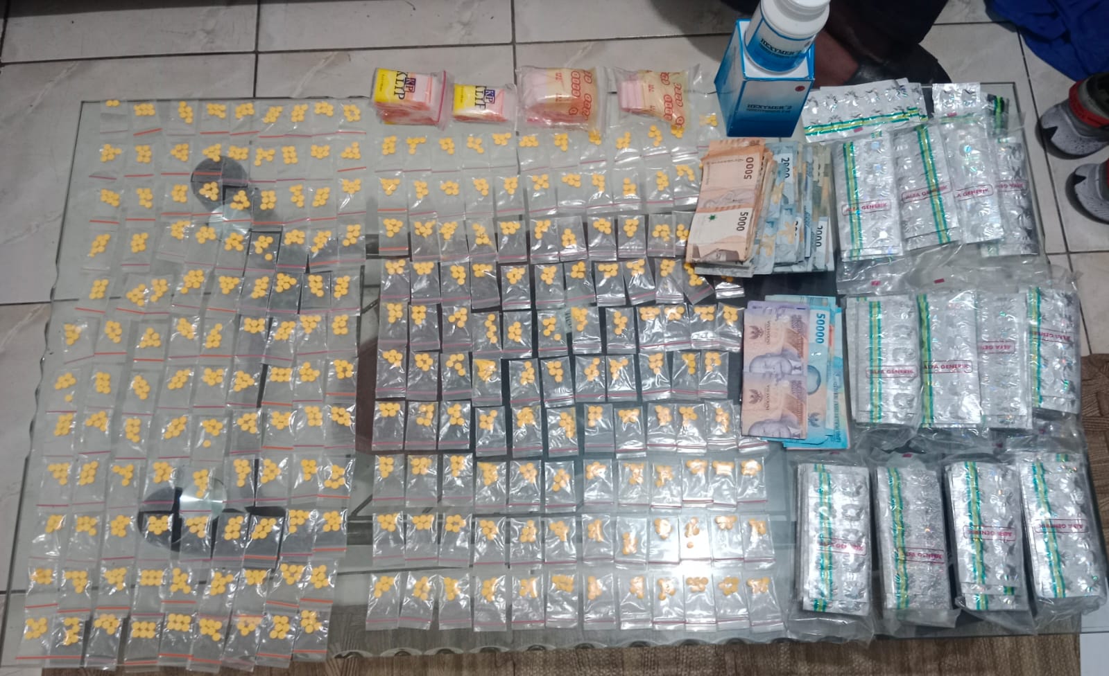 Dari lokasi penangkapan, petugas menemukan sebanyak 3.608 butir obat keras yang terdiri dari 1.240 butir tramadol dan 2.368 butir hexymer. Selain itu, polisi juga menyita dua unit telepon genggam, buku catatan, plastik klip, serta uang tunai sebesar Rp735 ribu.