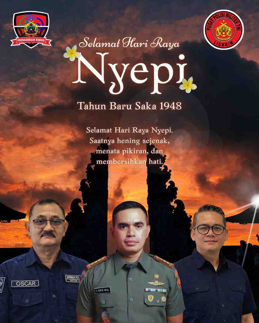 Semangat tersebut tercermin dalam ucapan resmi yang disampaikan jajaran Persaudaraan Mimikri bersama unsur Pusat Polisi Militer TNI sebagai bentuk penghormatan kepada umat Hindu yang merayakan.