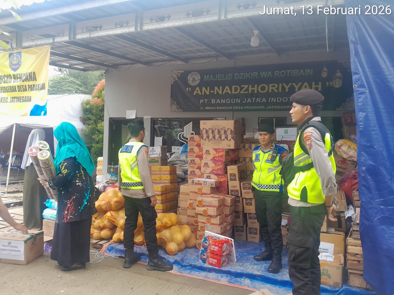 Selain pengamanan wilayah, personel juga aktif melakukan dialog dengan warga terdampak guna memberikan dukungan moral sekaligus memantau kebutuhan mendesak di lapangan. Bantuan logistik dari berbagai pihak pun terus berdatangan, mulai dari bahan pangan, air bersih, hingga makanan siap saji bagi pengungsi.