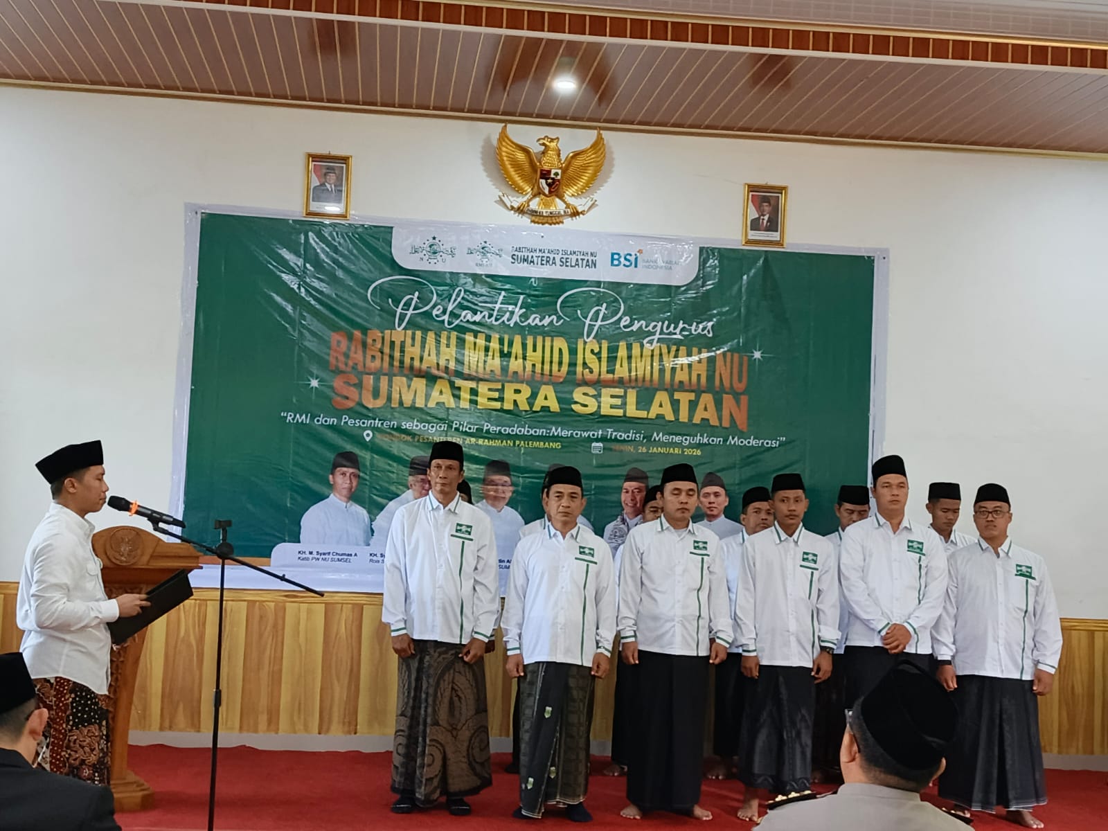 Palembang, newsoneindonesia.com – Pengurus Wilayah Nahdlatul Ulama (PWNU) Sumatera Selatan resmi melantik jajaran pengurus baru Lembaga Rabithah Ma’ahid Islamiyah (RMI) Nahdlatul Ulama Sumatera Selatan,Pelantikan ini mengusung tema besar “RMI dan Pesantren sebagai Pilar Peradaban, Merawat Tradisi, Meneguhkan Moderasi,yang menegaskan komitmen NU dalam memperkuat peran pesantren sebagai pusat pendidikan, dakwah, dan pembentukan karakter umat, dilaksanakan di pondok pesantren ar Rahman Palembang.