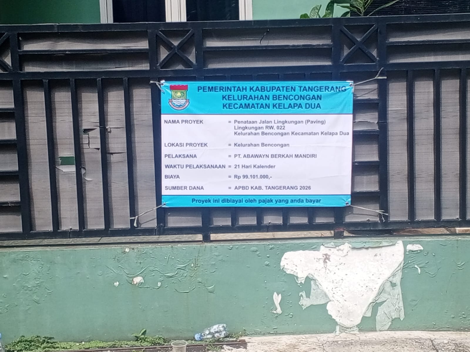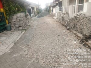 Newsoneindonesia.com | Tangerang Kabupaten – Proyek Penataan Jalan Lingkungan di RW 022 Kelurahan Bencongan, Kecamatan Kelapa Dua, yang menelan anggaran APBD senilai Rp 99.101.000,-, menuai kritik tajam. Pihak pelaksana, PT. Abawayn Berkah Mandiri, terindikasi melakukan praktik pengerjaan “asal jadi” dengan menggelar material agregat (basecourse) langsung di atas permukaan paving lama tanpa proses pembongkaran. Metode ini dinilai melanggar Standar Operasional Prosedur (SOP) konstruksi jalan yang akuntabel, Minggu (19/4/2026).