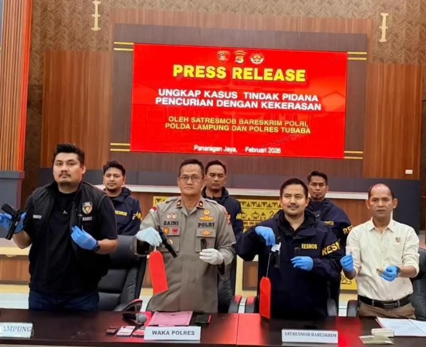 Newsoneindonesia.com, Lampung – Tim Satresmob Bareskrim Polri bersama Polda Lampung dan Polres Tulang Bawang Barat berhasil mengungkap kasus pencurian dengan kekerasan (curas) menggunakan senjata api yang terjadi di Kabupaten Tulang Bawang Barat, Lampung, Kamis (20/2/2026).