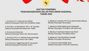 Atas jasanya di bidang perjuangan politik dan diplomasi, Presiden Prabowo Subianto menganugerahkan gelar Pahlawan Nasional kepada Zainal Abidin Syah.Penganugerahan berlangsung di Istana Negara, Senin, 10/11/2025 pagi.