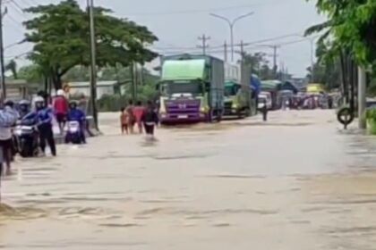 Newsoneindonesia.com, Pemalang | Arus lalu lintas di jalur Pantura (Pantai Utara) Jawa, tepatnya di ruas Pelawangan perbatasan Pemalang-Tegal, lumpuh total pada Senin pagi. Genangan air dengan ketingg...