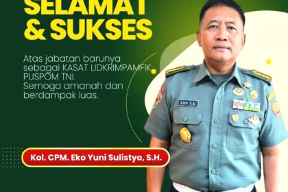 Newsoneindonesia.com| Jakarta – Persaudaraan Mimikri menyampaikan ucapan selamat dan sukses atas penunjukan Kolonel CPM Eko Yuni Sulistyo, S.H. sebagai Kepala Satuan Lidkrimpamfik Pusat Polisi M...