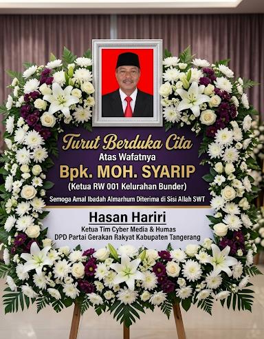 _”Atas nama pribadi dan seluruh jajaran Tim Cyber Media & Humas DPD Partai Gerakan Rakyat Kabupaten Tangerang, kami turut berduka cita yang sedalam-dalamnya atas wafatnya Jaro RW 01 Kelurahan Bunder, Bpk. MOH. SARIP.”_